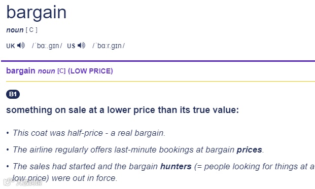 “bargain”,除了有“协议,契约”的意思外,还可以表示“廉价货、便宜货”。