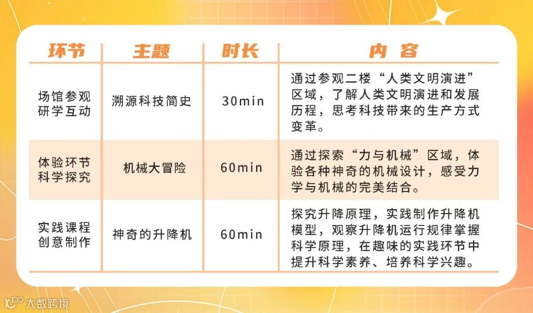 活动含参观、互动、体验、实践等环节,并配套相关研学手册,集趣味性、知识性于一体,让孩子聚焦科技视野,拓展实践能力,让孩子在快乐中收获知识、提高素养!
