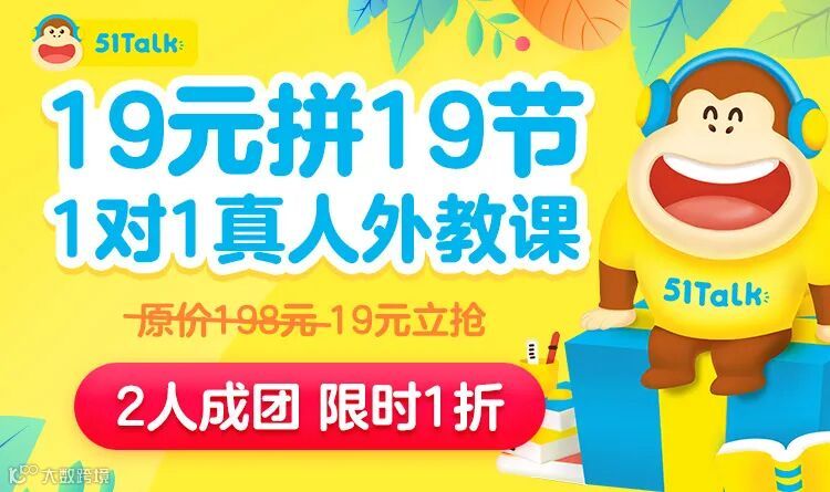 19元抢19节1对1外教课,赶紧来团~