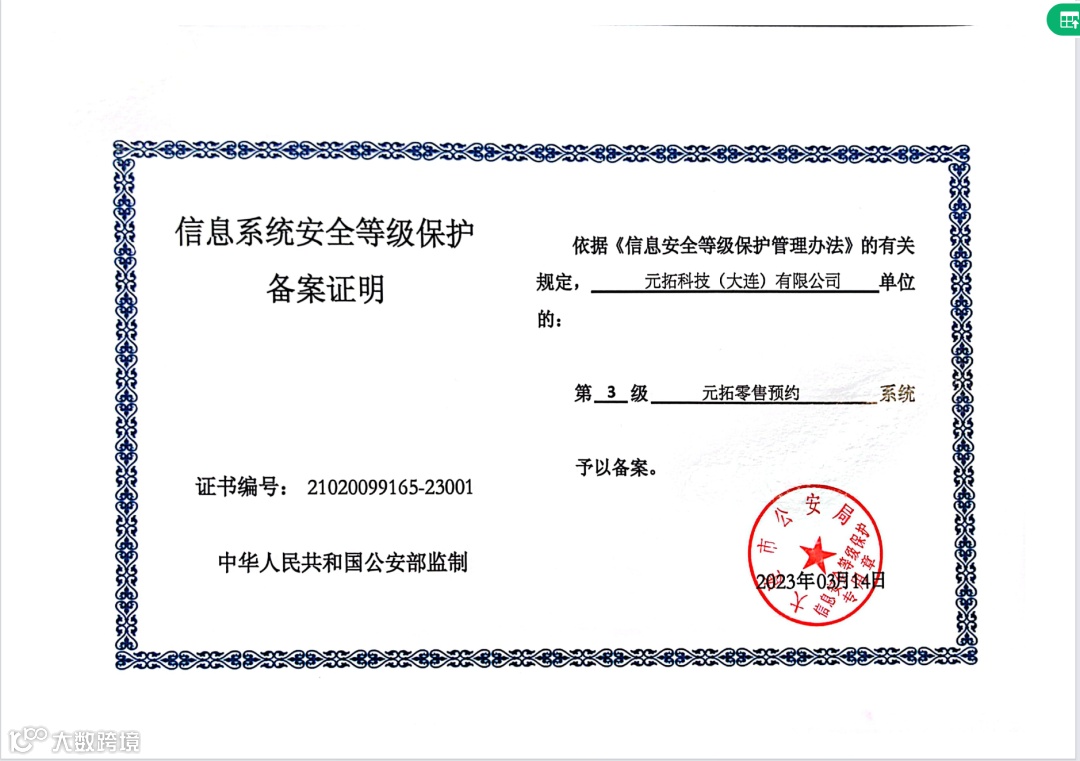 信息系统安全等级保护备案证明