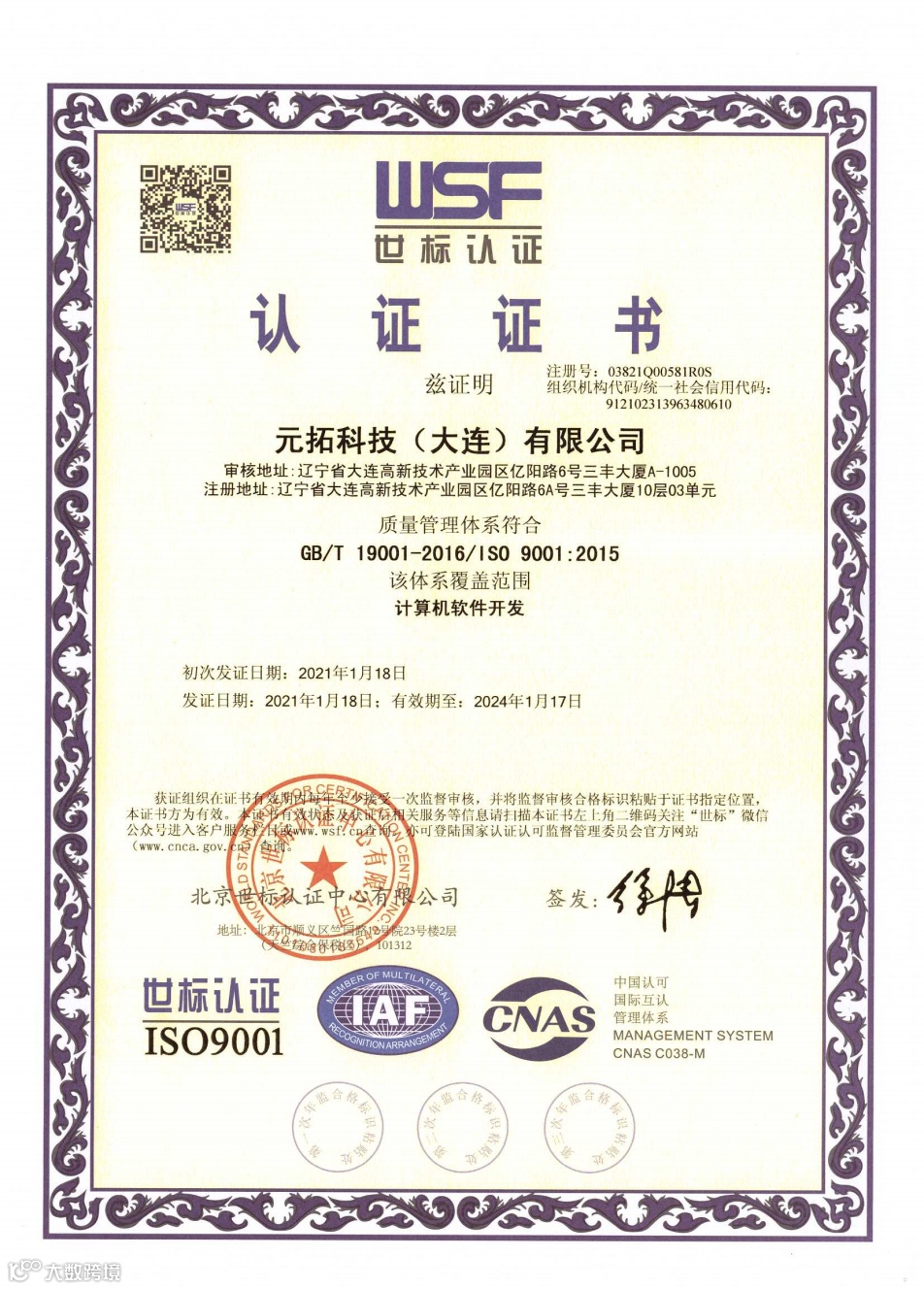 ISO9001认证证书
