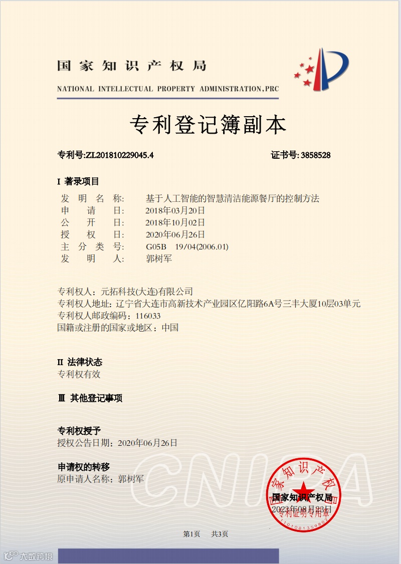 基于人工智能的智慧清洁能源餐厅的控制方法-专利