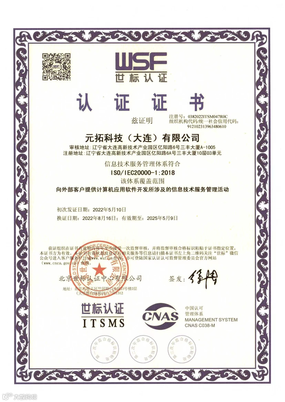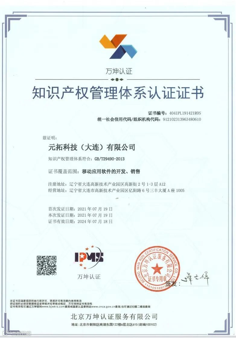 知识产权管理体系认证证书