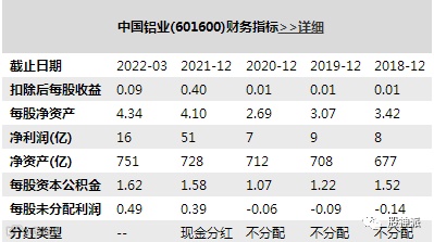 中国铝业发布2021年报显示:2021年,全年实现营收2697.48亿元,同比增长45.03%;归母净利润50.79亿元,同比增长585.5%;扣非归母净利润70.29亿元,同比增加1687%。中国铝业2022年一季报显示,第一季度实现营业收入756.21亿元,同比增长43.6%;实现归属于上市公司股东的净利润15.75亿元,同比增长60.5%。