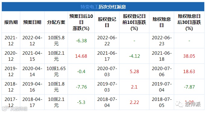 2021年年度特变电工分红实施方案:以37.91亿股股本为基数,向全体股东每10股派发现金红利5.8元(含税,税后5.22元),合计派发现金红利总额为21.99亿元。本次权益分派股权登记日为2022年6月22日,除权除息日为2022年6月23日。