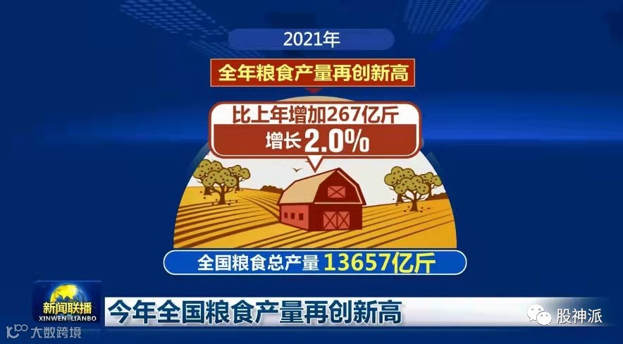 2021年全国粮食总产量13657亿斤,再创历史新高,比上年增加267亿斤,增长2.0%,连续7年保持在1.3万亿斤以上。粮食播种面积连续两年增加,全国粮食播种面积17.64亿亩,比上年增加1295万亩,增长0.7%。全国猪牛羊禽肉产量8887万吨,比上年增加1248万吨,增长16.3%。猪肉产量大幅增长,牛羊禽肉产量稳定增长,牛奶产量较快增长,禽蛋产量有所减少。受能耗双控和坚决遏制“两高”项目盲目发展政策、同期基数抬升等因素影响,能源消费增速呈逐季回落态势。全年能源消费总量比上年增长5.2%,增速比一季度、上半年、前三季度分别回落9.4个、5.3个、2.1个百分点;两年平均增长3.7%。占全社会能源消费六成以上的规模以上工业能源消费增长3.5%,比一季度、上半年、前三季度分别回落11.0个、6.6个、2.5个百分点。