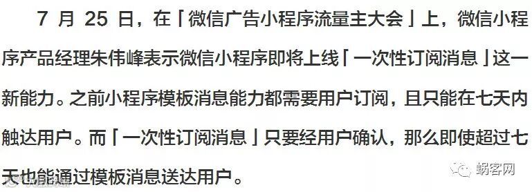 7 月,微信宣布将上线小程序「一次性订阅消息」