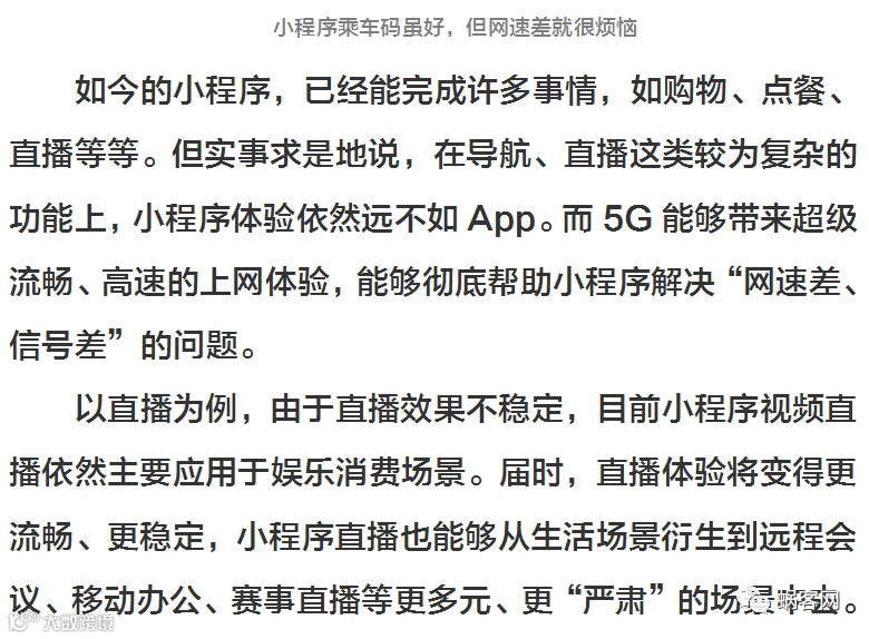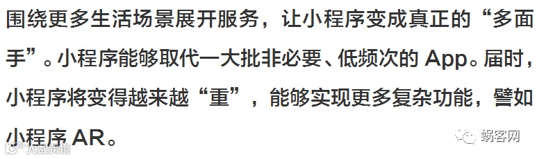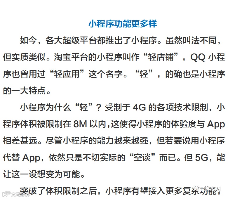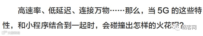 总的来说,5G给小程序的发展带来了非常大的想象空间。我们甚至可以说,小程序正是为5G时代而诞生的。不久前,中国电信已率先上线了5G体验套餐,并表示,明年年底前,5G手机就将至2000元以内。如此看来,5G技术全面民用化已然不远了。那么,小程序的下一个增长爆发点还会远吗?