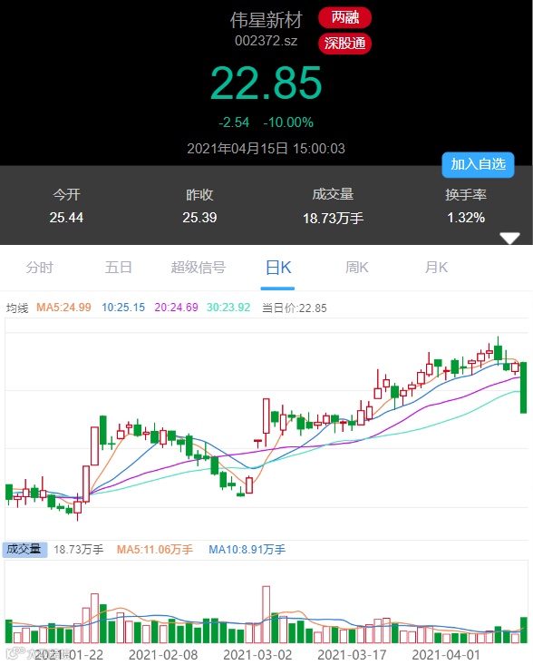 今日早盘,伟星新材一度跌停,截至今日收盘,该股收报22.86元,最新市值为364亿元。在今日跌停前,伟星新材市值超400亿元。与别的白马股不同,伟星新材今年以来股价继续一路走高。