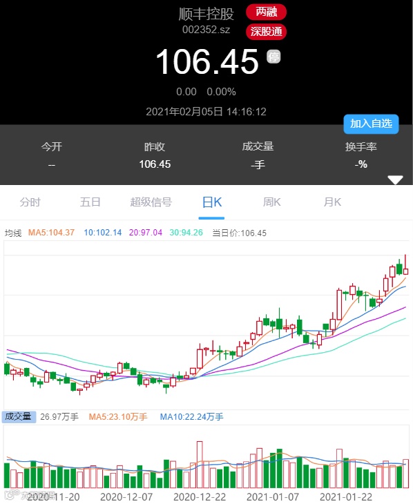 作为国内物流巨头,顺丰控股股价2020年大涨138%,2021年初涨幅超过20%,最新市值4850亿元,排名A股市值23位。