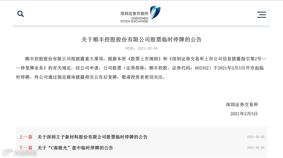 导读:顺丰控股拟披露重大事项临时停牌,背后的原因曝光