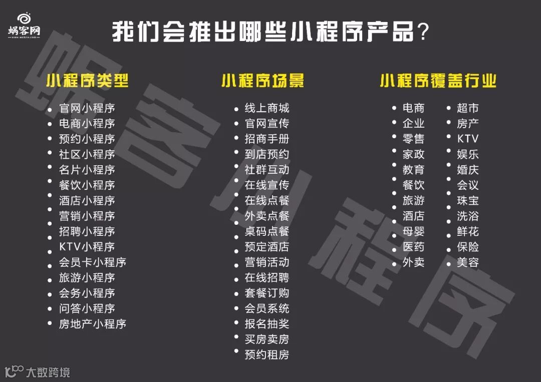 总之,对于实力不强大的中小商家做小程序是更为合适的。另外,在选择小程序开发公司时,一定要选择合适的小程序开发公司。试想一下,当小程序开发的浪潮归于平静,大量小程序创业公司走向死亡之后,后续将会麻烦不断!先不谈论售后问题,小程序平台能否继续正常使用都将成为一大问题!在二三线城市想要争抢这一波红利,选择一家实力强大的开发公司将是明智的选择,比如蜗客网小程序!