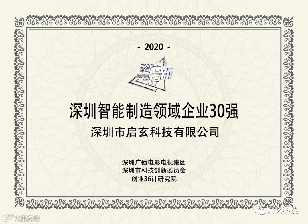 导读:启玄科技荣获《2020深圳智能制造领域企业30强》