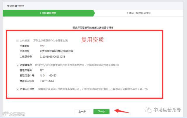 (要全部勾选,复用公众号的资质,可免除认证300元,不勾选就需要花钱认证了!!!)