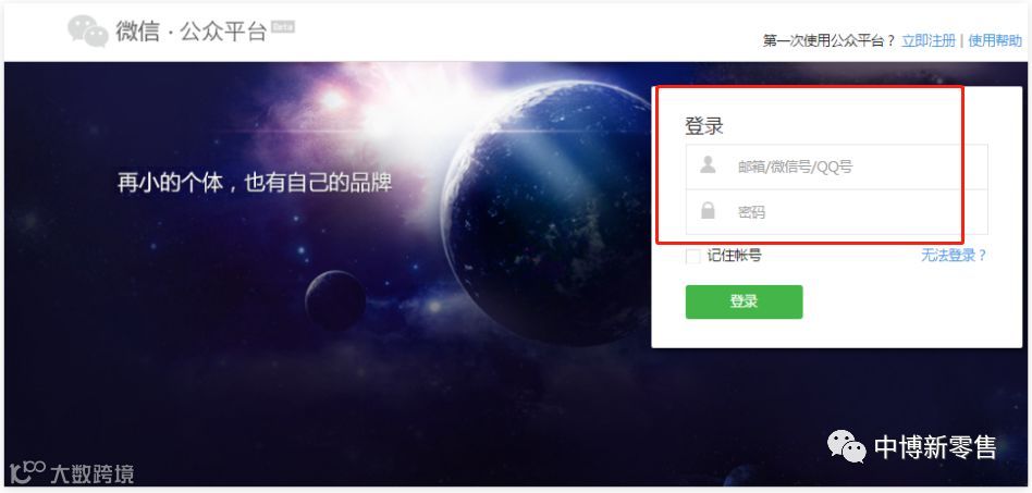 完成注册后,在微信公众平台官网首页(mp.weixin.qq.com)的登录入口直接登录。