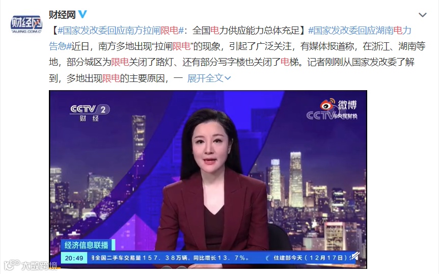 电力紧张还已惊动了国家发改委,其回应表示,工业生产高速增长和低温寒流叠加导致电力需求超预期高速增长。国家发改委已会同相关部门企业,采取措施切实保障电力需求,确保电力供应总体平稳有序。