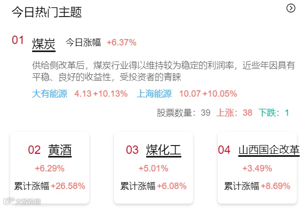 多重因素刺激,机构看好大宗商品长期牛市,且大宗商品的上涨引起股市联动。A股板块中,煤炭、黄酒、煤化工涨幅居前,指数分别上涨6.37%、6.29%和5.01%。