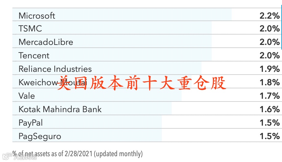 值得注意的是,晨星显示的为这只基金在欧洲、亚洲发行的版本(简称“欧亚版”),相较于在美国发行的版本,规模较小。根据晨星数据,截至3月11日,该版本规模仅4.03亿美元。不过两个版本由同一班基金经理(共12位)管理,采取相同的投资策略。