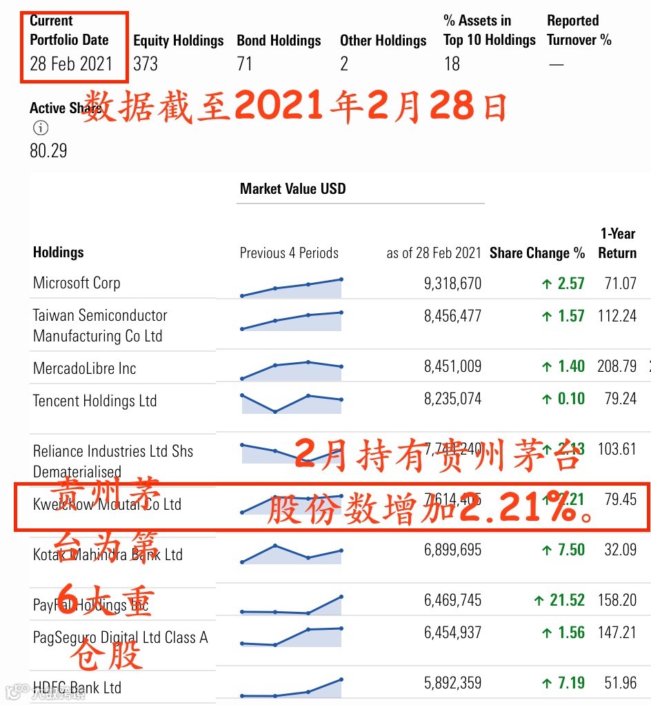 机构人士认为,同一班基金经理管理的同一基金在不同市场销售时也有可能根据当地的监管规定做出个别调整。因此很有可能美国版本同期也小幅增持了贵州茅台,而该版本的规模则超过500亿美元。