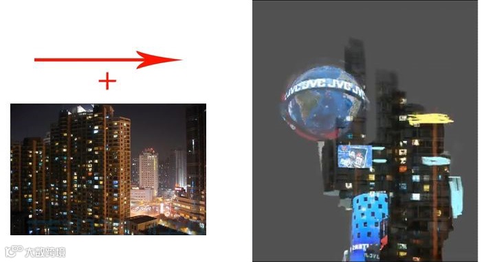 找一些科技屏的素材(可以找夜晚的时代广场)贴上,丰富画面,使用滤色模式,修补边缘,使整个场景和元素显得真实。