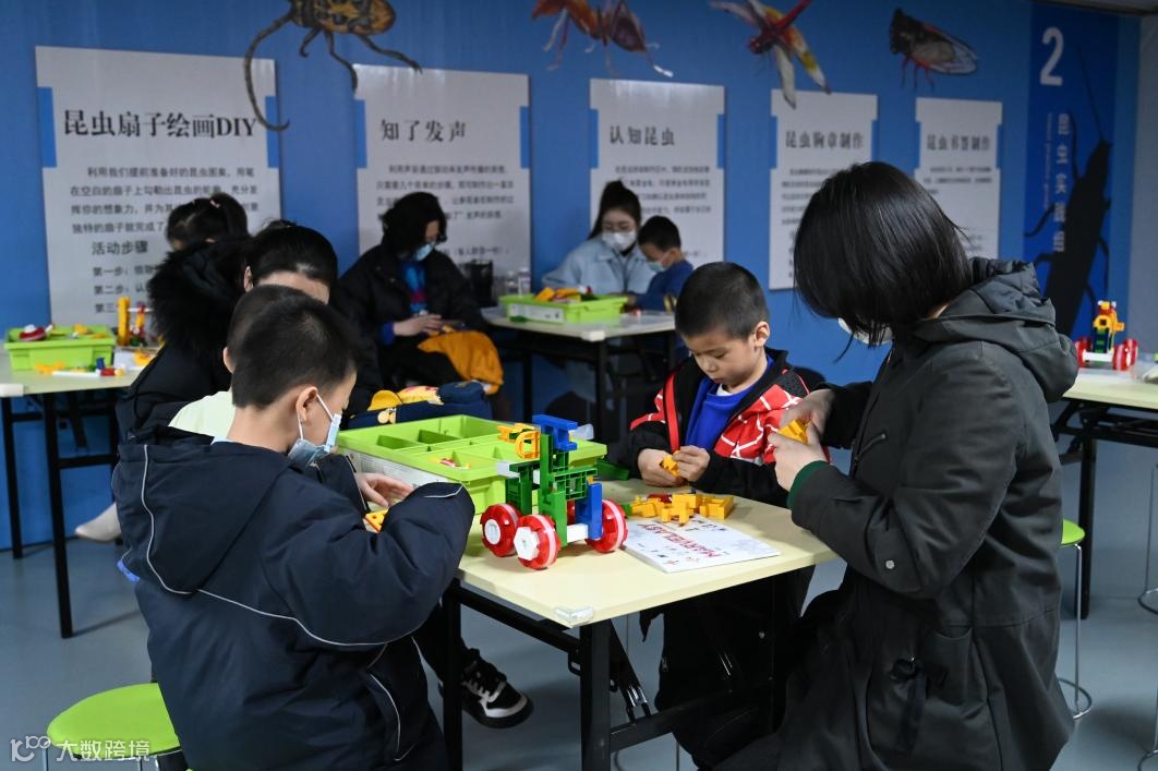 在负一层“小小拼搭师”活动现场,邀请大朋友与小朋友们一起动手体验,开启奇妙的创意之旅。不同形状的组件,在三口之家的手中,在爷孙及奶奶的手中,在兄弟姊妹的手中,搭配出各种神气活现的作品。有充满浓浓年味的“鞭炮”“灯笼”;有搏击长空的“双翼飞机”,有雪地飞奔的“雪橇车”;还有充满童真的“跷跷板”。四天八场的活动,场场爆满,为在科技馆里过大年的观众留下一份独特的记忆。