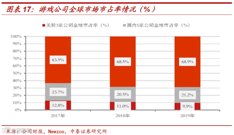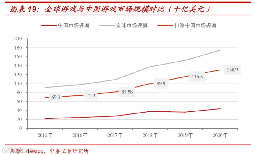 2020年全球游戏市场规模达到1749亿美元,但中国游戏公司仅占了1/10的规模,未来潜在提升空间非常大。