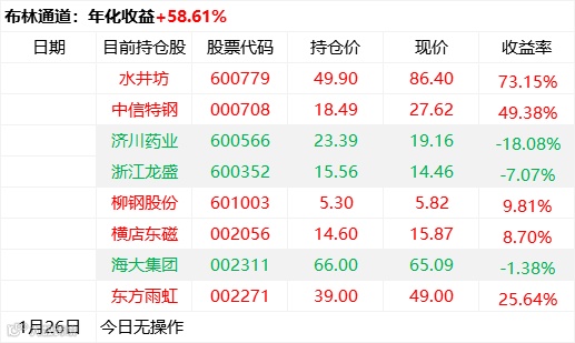 目前持仓:水井坊、中信特钢、济川药业、浙江龙盛、古今贡酒、柳钢股份、横店东磁、东方雨虹