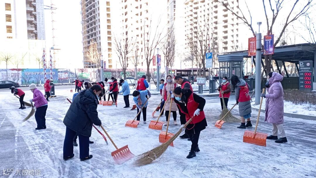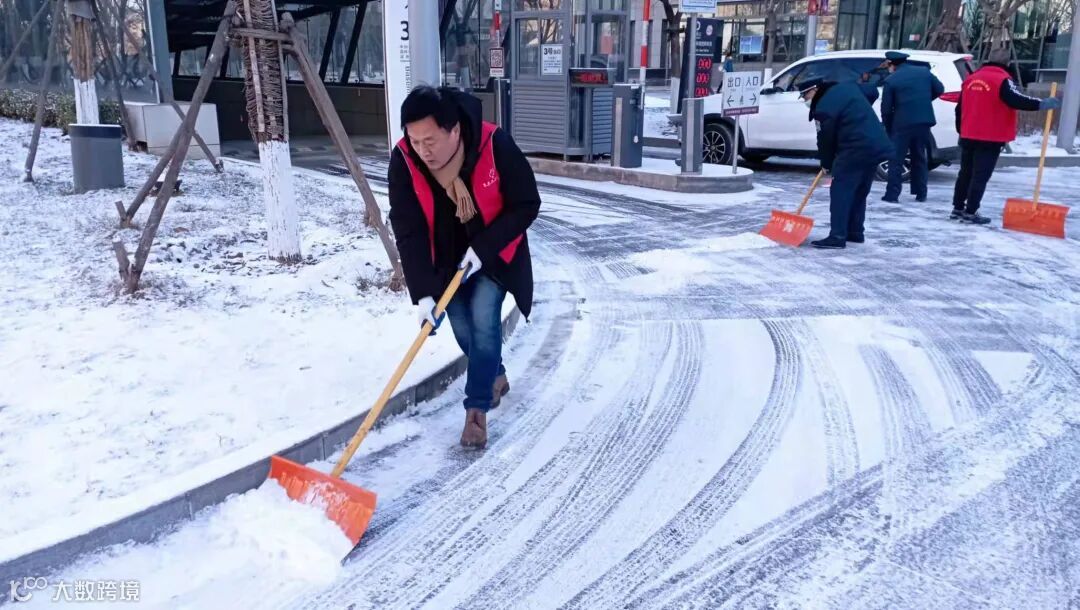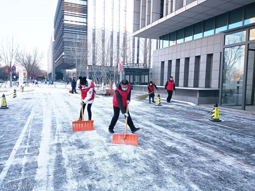 他们兵分三路,分别把科技馆北门由地下车库通往科技馆西门的通道和科技馆西门前的南北通道,以及136路公交车站通往科技馆西门通道上的冰雪清扫出来。