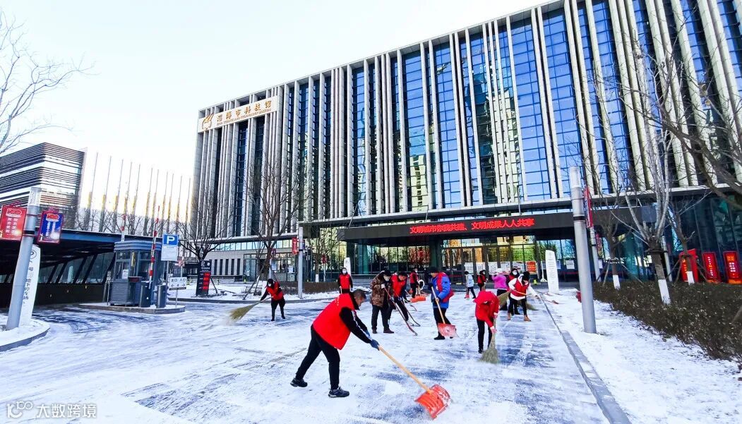 淄博市科技馆13日早上,淄博市科技馆30多名党员、团员、青年志愿者,以雪为令,8点以前自发赶到单位,冒着零下7度的严寒铲冰除雪。