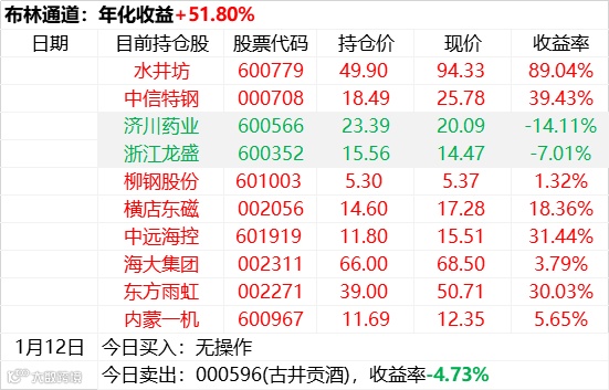 目前持仓:水井坊、中信特钢、济川药业、浙江龙盛、古今贡酒、柳钢股份、横店东磁、中远海控、海大集团、东方雨虹、内蒙一机