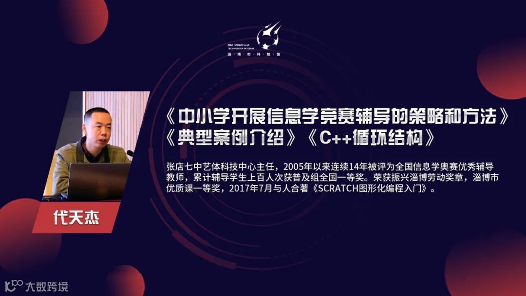 张店七中艺体科技中心主任代天杰老师作题为《中小学开展信息学竞赛辅导的策略和方法》《典型案例介绍》和《C++循环结构》的讲座,介绍了自己的教学方法和教学理念,针对中小学段如何开展信息学竞赛辅导进行了经验分享,并结合实际案例对信息学竞赛C++循环结构方面的知识进行了解读。