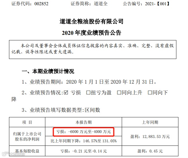 业绩炸雷,道道全套期保值巨亏2亿