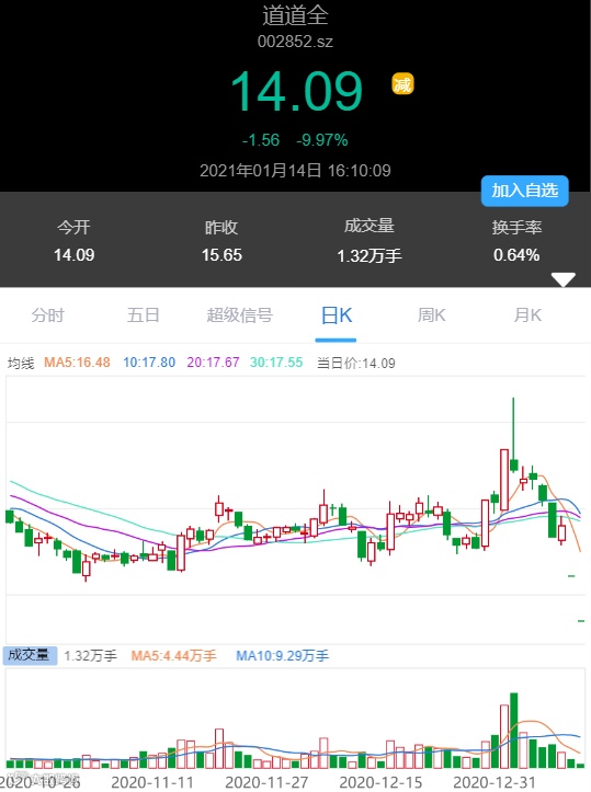 道道全连续两日一字跌停