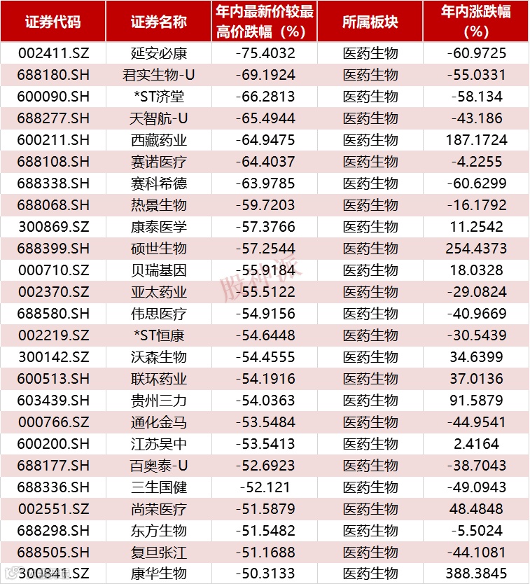 25只医药股遭“腰斩”