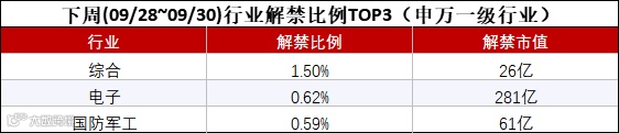 来看, 综合、电子、国防军工行业下周解禁比例最大, 电子、食品饮料、化工行业下周解禁市值最大。
