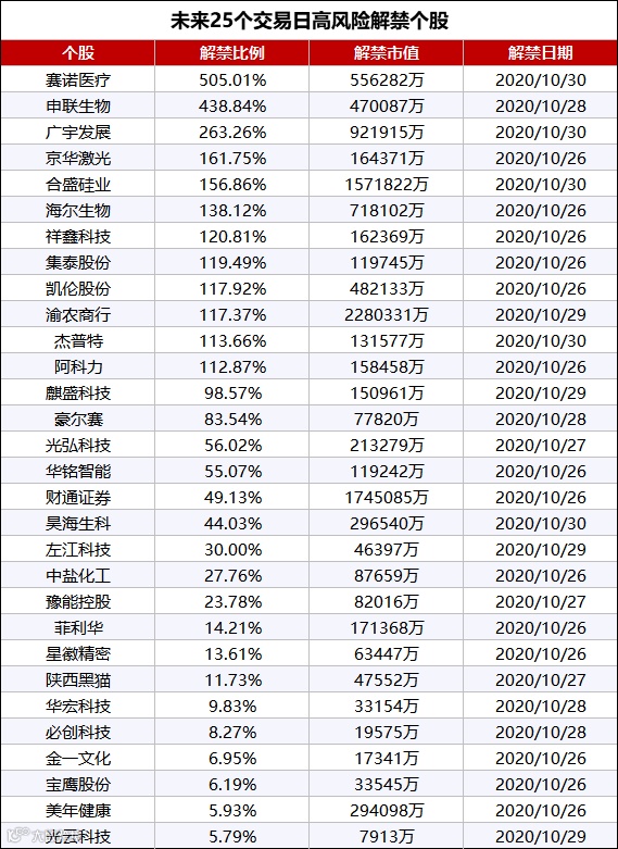 预警:小心这些25个交易日后高比例限售解禁股