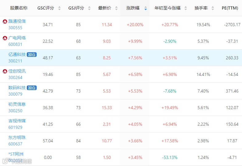 广电系个股27日盘中发力走高,截至收盘,广电网络、路通视信涨停,亿通科技、佳创视讯涨超6%,数码科技涨超5%,初灵信息、吉视传媒等涨幅超5%。