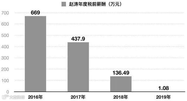 值得注意的是,步长制药上市的2016年,赵涛的薪酬为669万元,到2019年仅有1万多元。