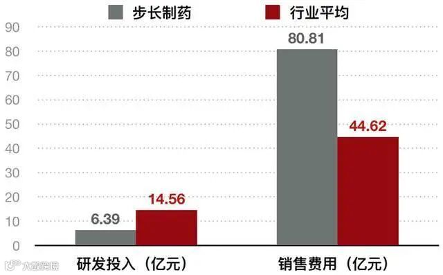 然而,销售费用却高达80.81亿元,高于行业平均的44.62亿元,占比总营收56.68%,其中94.66%的销售费用花在了市场、学术推广及咨询。