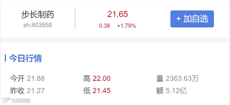4月28日股市收盘,步长制药报21.65元/股,市值247亿元。2019年初至今,步长制药股价累计上涨15.05%。