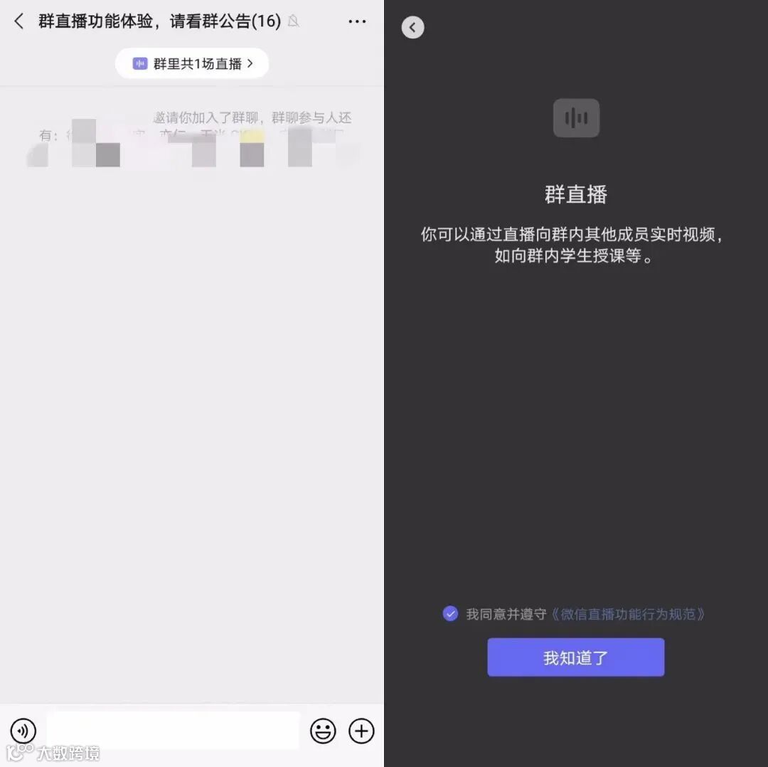 8月28日晚间,不少微信用户在网络上透露,群聊的菜单栏中出现了“群直播”入口,这意味着微信已经在灰度测试群直播功能,或将开启全民直播时代。