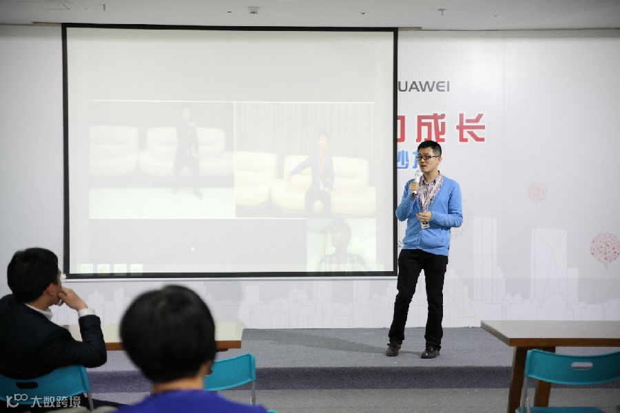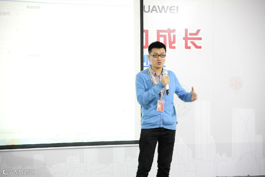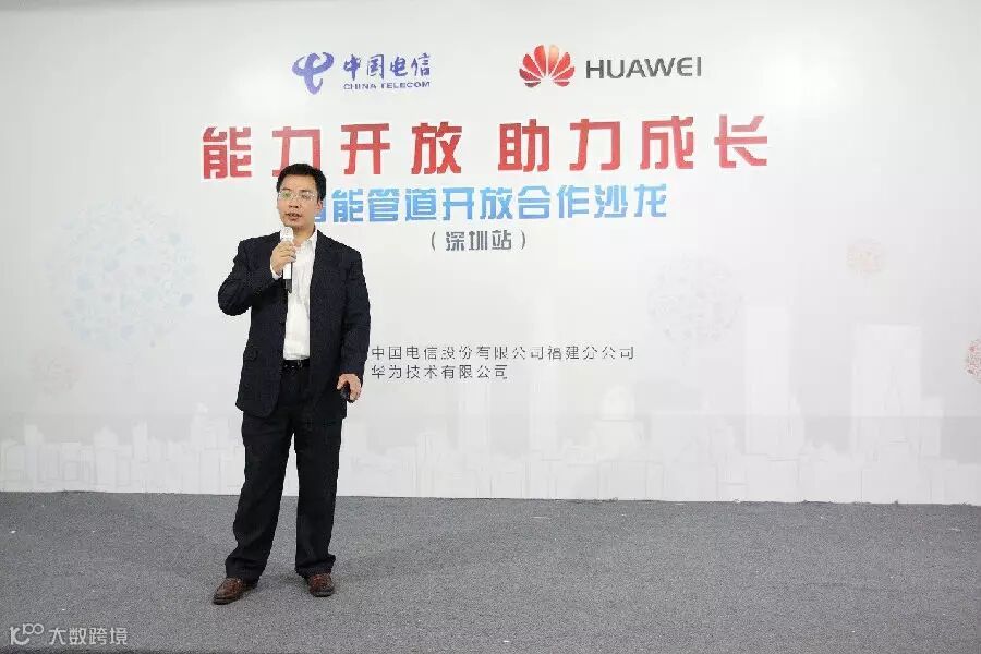 图为华为公司通信能力开放平台合作总监蒋旭东宣讲智能管道开放能力