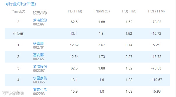 梦洁股份同行业对比