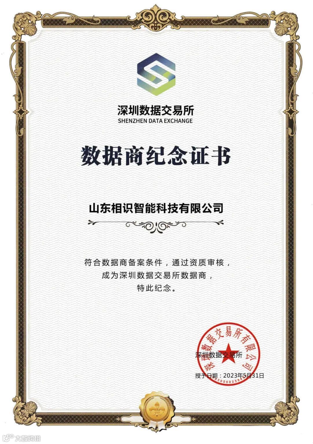 2023年5月,山东相识智能科技有限公司通过了深圳数据交易所的资质审核,成为深圳数据交易所首批数据商之一。