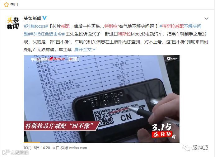 2020年的3月初,有数十位国产Model 3的车主表示,在自己不知情的情况下,购买的国产Model 3应配置的自动驾驶硬件HW3.0芯片被“减配”为HW2.5版本。