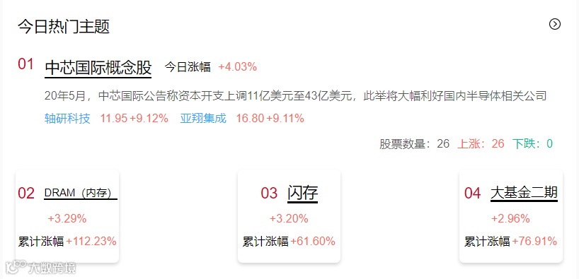 此后大盘总体下探回升,早盘单边下挫的态势稍显好转,科技股转暖,半导体板块较为强势,此外miniled、光刻胶等均有冲高。