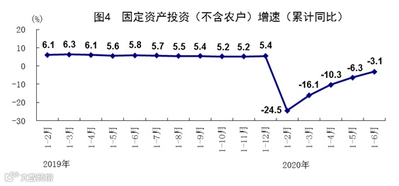 上半年,全国固定资产投资(不含农户)281603亿元,同比下降3.1%,降幅比1-5月份收窄3.2个百分点,比一季度收窄13.0个百分点。