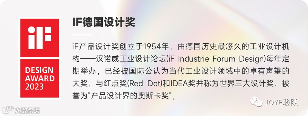 近日,被誉为设计界“奥斯卡”的德国iF设计奖2023年度获奖名单揭晓。骏跃科技凭借卓越产品设计,斩获2023德国iF设计大奖,赢得了全球范围的广泛认可。此次荣获奖项,不仅是对骏跃科技设计水平的再次认可,更是对骏跃科技长期以来坚持为家居电气化持续创新的高度肯定。