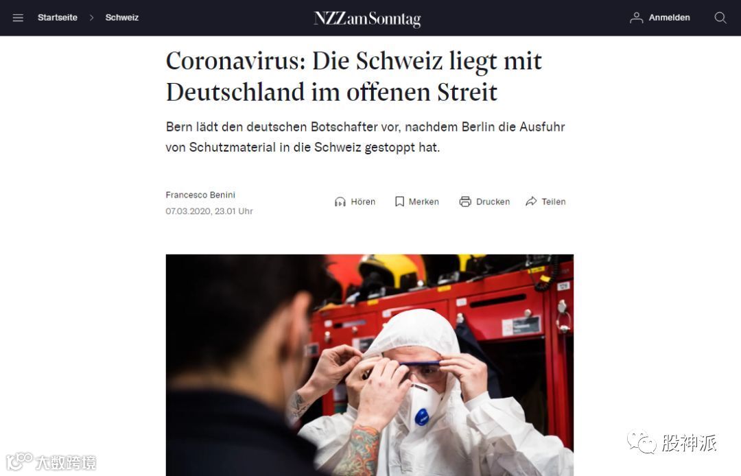 据《新苏黎世报》等媒体3月7日报道,近日,因为德国限制口罩及其他防疫物资出口,导致同样急需物资抗击疫情的瑞士大为不满。