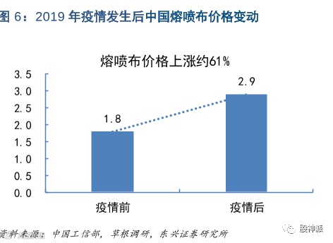 首先,熔喷布的价格近日来价格可谓成倍增长。根据2月11日券商发布的研报数据,熔喷布的价格较疫情前上涨超过六成,熔喷布价格由原来的约2万元/吨,涨到20万元/吨甚至更多。